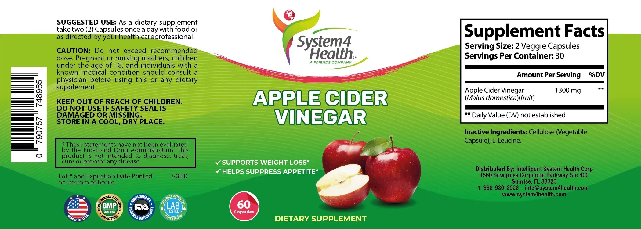 - DIGESTION & INMUNE HEALTH – It has been shown that Apple Cider Vinegar can help with weight management, digestion, and immune health. * Our formula contains 1300 mg of the purest form of Apple Cider Vinegar per serving compared to the standard 500 mg.