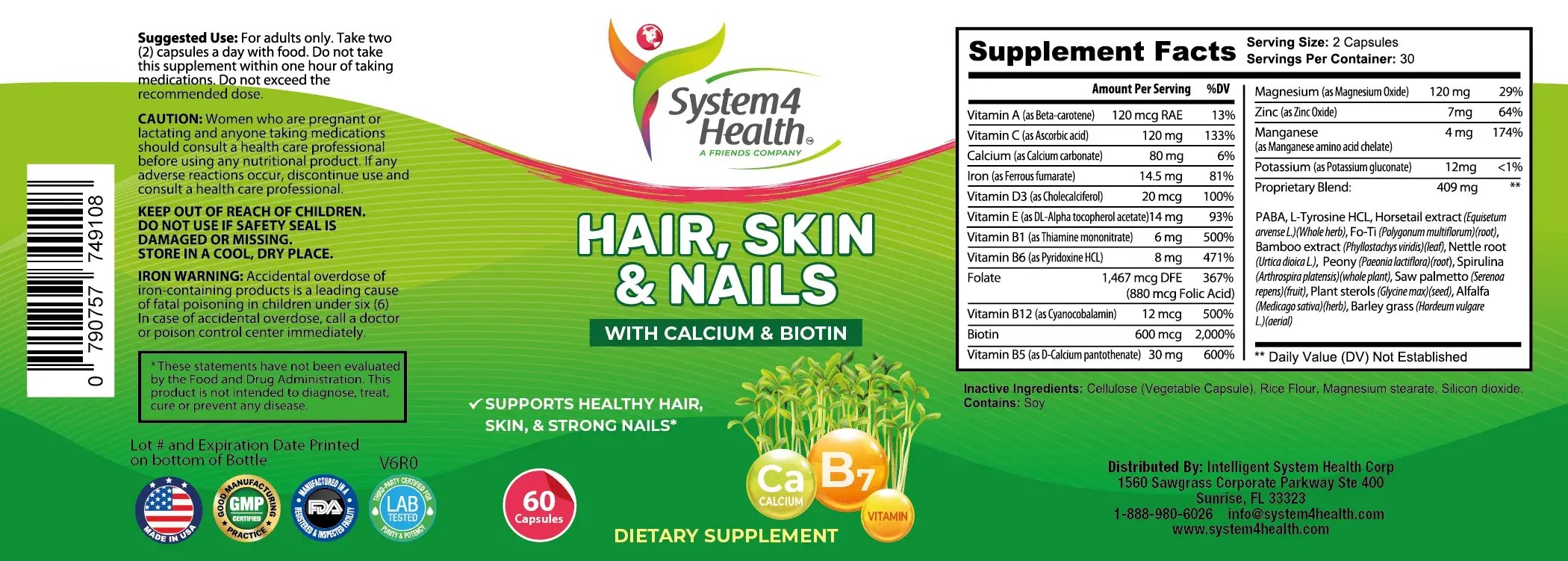 - HAIR SKIN & NAILS VITAMINS – Comprehensive formula designed to support fast, healthy, strong development of cells and tissues in the epidermis, dermis, and subcutaneous layers. *